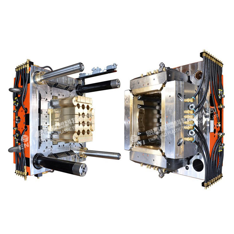 We produce beer bottles,coke bottles turnover box mold, and provide customers with bottle turnover box molding solutions! Our turnover box mold design has four inclined roofs, and the four side walls are contacted through the handle.For this turnover box, we can choose one out of two, the molding cycle can reach 35seconds, and the mold can be demoulded automatically.The turnover die has four side sliders, four inclined tops in the core, and a slider connecting rod at the four corners of the cavity.This popular design can protect the bottle from the vibration of the truck and the collision between Coke bottles.